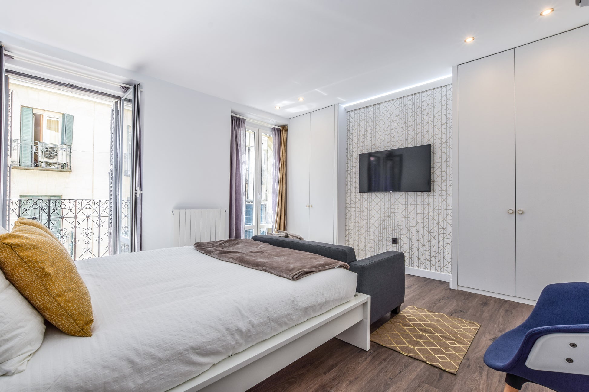 En una de las calles más emblemáticas del centro de Madrid, este piso de 193 m² combina el encanto arquitectónico tradicional con un interiorismo contemporáneo de líneas puras y materiales de alta calidad. Situado en la tercera planta de un edificio clásico con ascensor, la vivienda ofrece cinco dormitorios y cinco baños, distribuidos en espacios amplios y luminosos que conservan la esencia del entorno histórico. El salón–comedor, con acceso a un balcón exterior, conecta de forma fluida con la cocina equipada, creando un ambiente ideal para disfrutar y recibir. Dispone de calefacción individual por gas, sistema de climatización, trastero y un diseño interior completamente amueblado que equilibra confort y estilo.